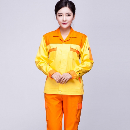 苏州鹰诺服装:黄色拼橘黄晋中工作服AC03-4