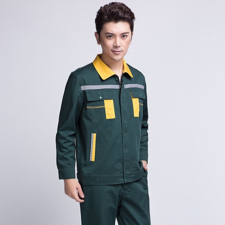 苏州鹰诺服装:墨绿拼黄色工作服AC09-3