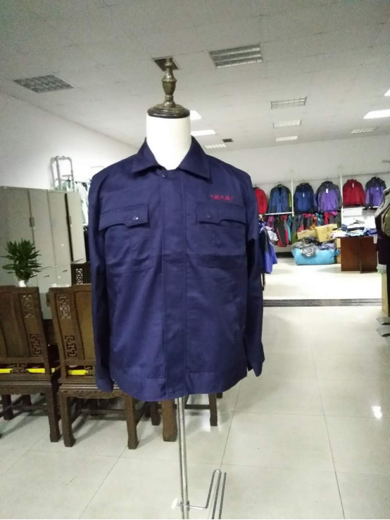 飞腾汽车修理厂选择的是鹰诺达的AC070款式的,全藏青色,左胸刺绣红色的LOGO,飞腾汽车修理厂工作服就诞生啦。