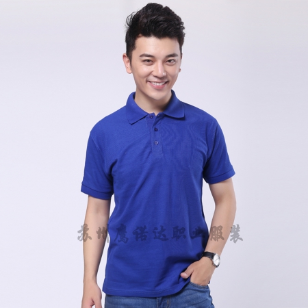 苏州鹰诺服装: 艳兰色纯棉双丝光紧身短袖T恤工作服 ID269-TX