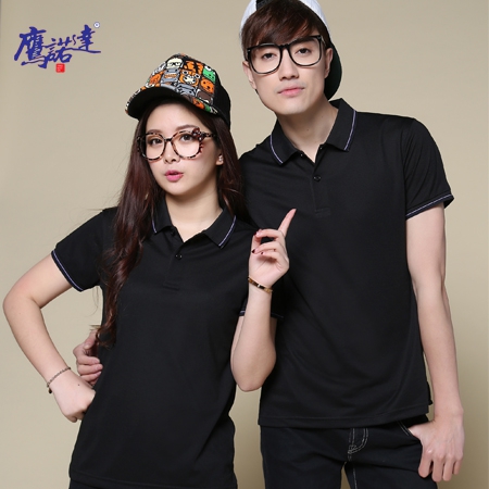 苏州鹰诺服装:黑色提花领莱卡棉广告衫ID6122系列