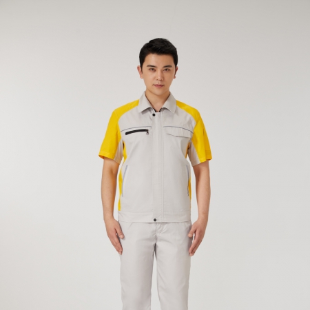 苏州鹰诺服装:浅灰拼黄色工作服AD2206-4