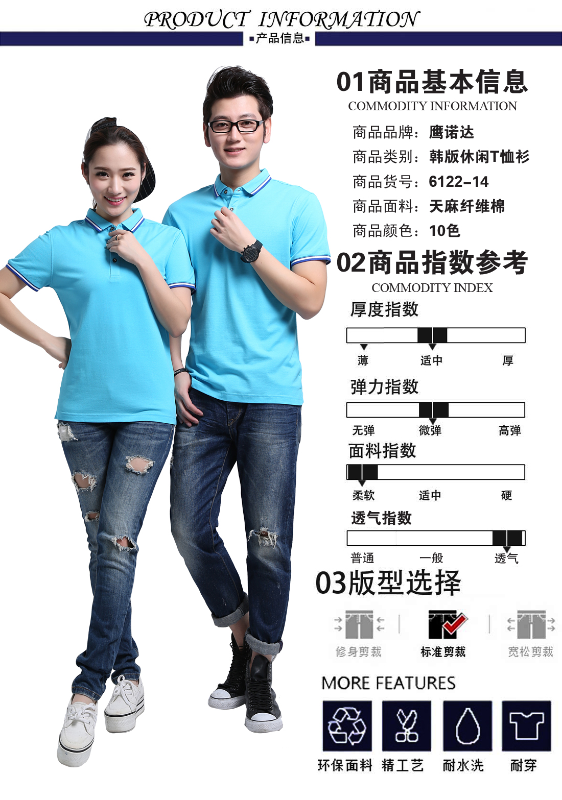 - 游客于 2017-08-01 10:42:03 发表浅蓝电脑提花领天麻纤维棉Polo衫ID6122-14